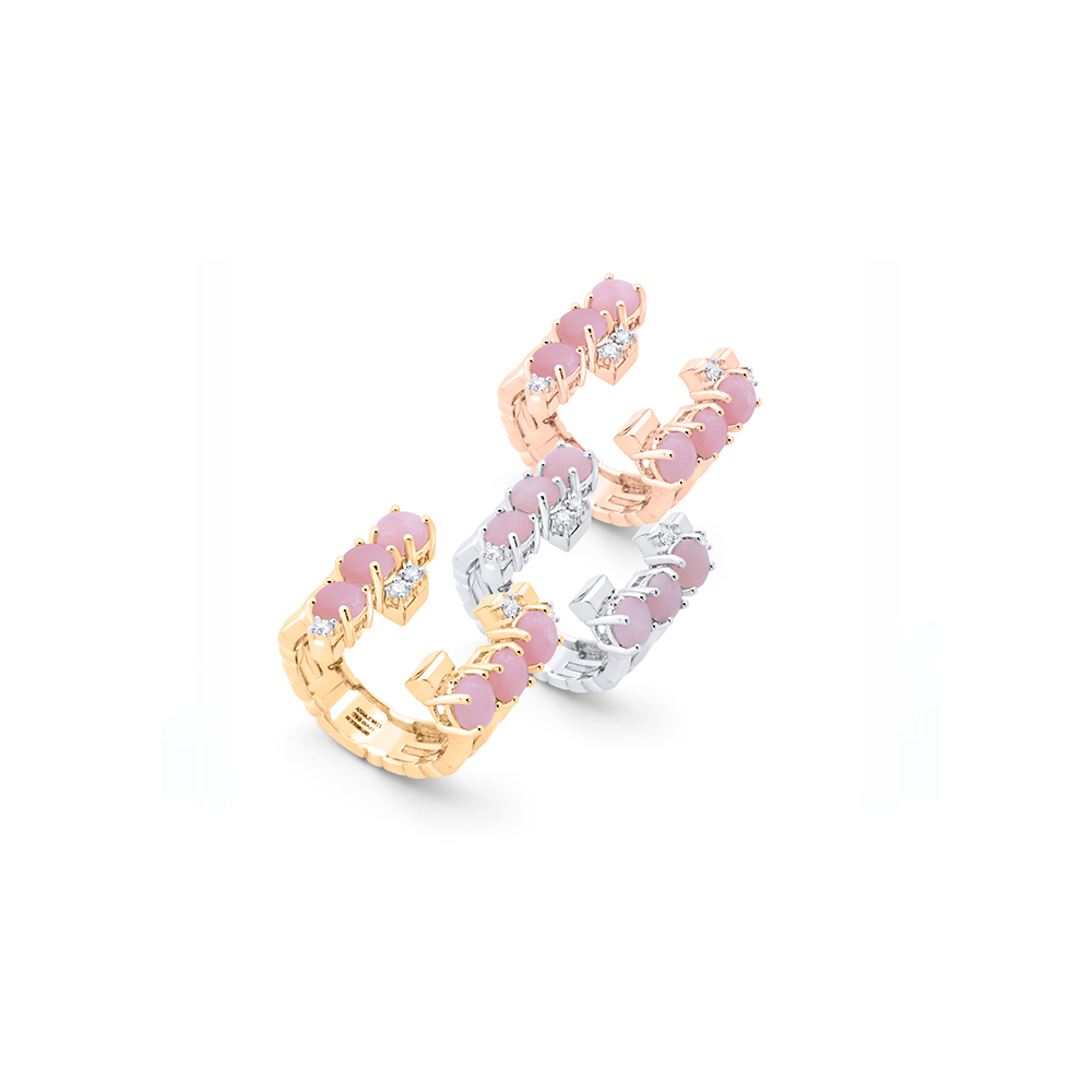 18K White Gold (9.567 grams), VS, G Color Diamond (0.15 carat), and Pink Opal (0.6 grams) approximately.