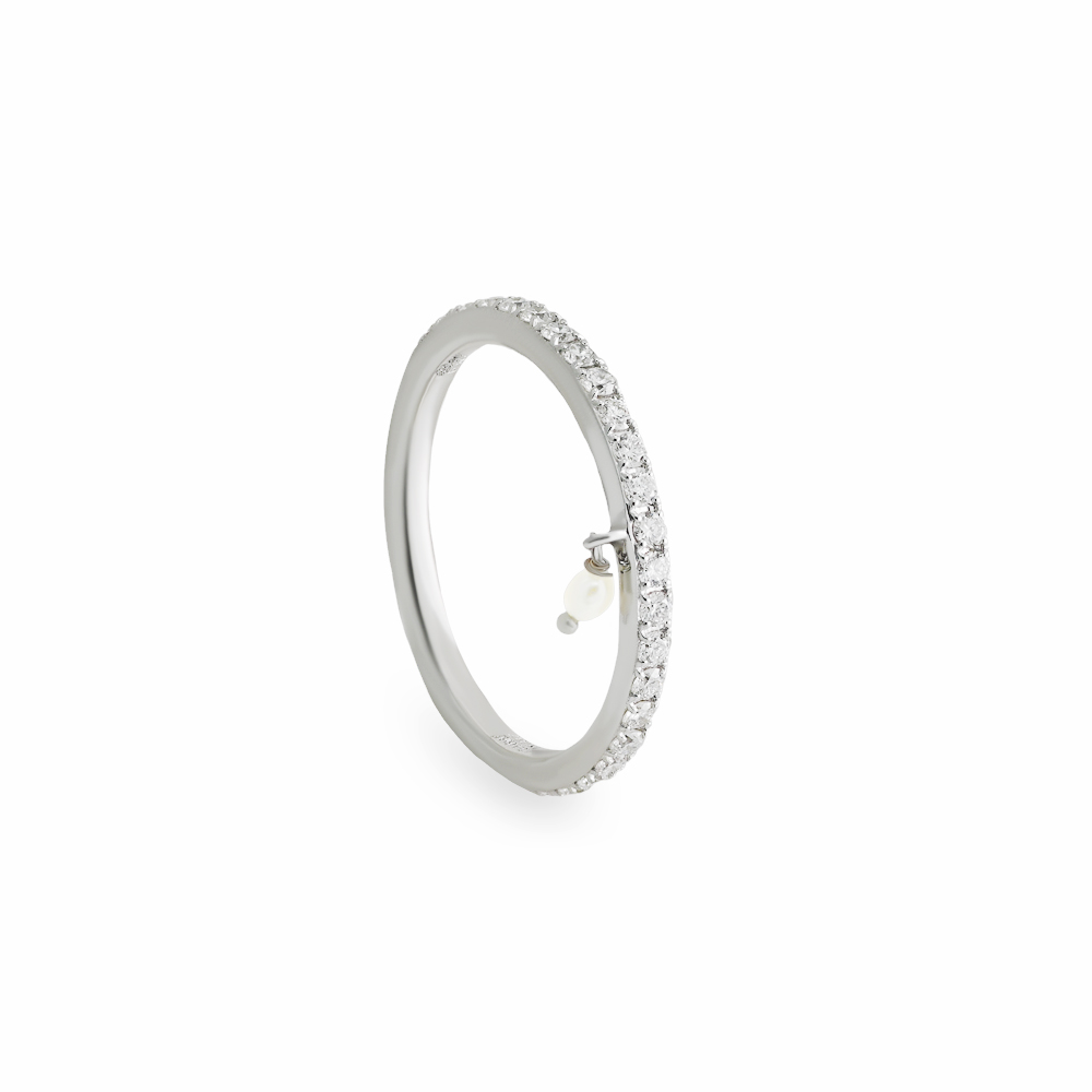 ذهب أبيض عيار 18 (2.22 جرام)، مرصع بالألماس درجة ڤي اس، اللون جي (0.42 قيراط)، ولؤلؤ بحريني طبيعي (0.01 جرام) تقريبًا.