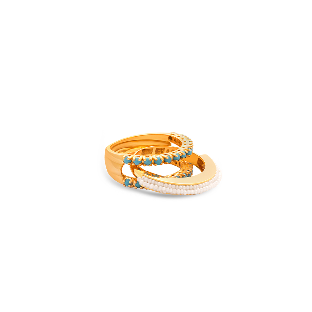 ذهب أصفر عيار 22 (8.5 جرام)، فيروز (0.188 جرام)، ولؤلؤ بحريني طبيعي (0.258 جرام) تقريبًا.
